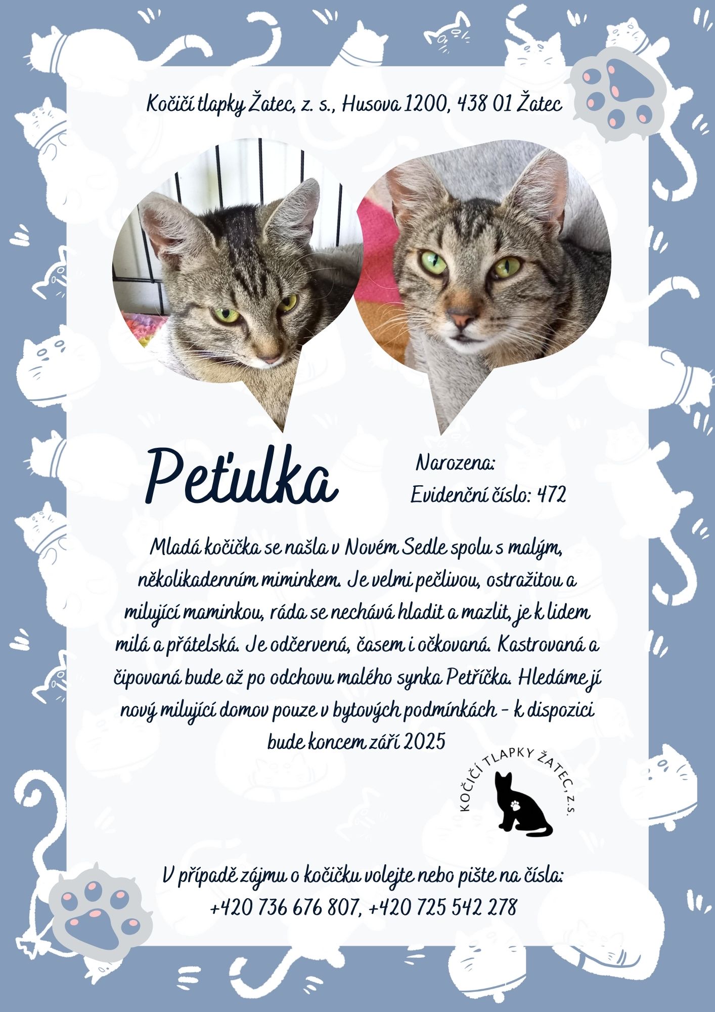 A pokud kočičku adoptovat nemůžete, i tak můžete přispět k jejich dobrému životu - přijďte se s nimi k nám po domluvě pomazlit, zapojte se do péče o ně u nás, doneste jim papání nebo nás podpořte třeba i drobným finančním obnosem na náš transparentní účet. Jak efektivně pomoci naleznete ZDE. Děkujeme. Vaše Kočičí tlapky Žatec 🐈🐾 Děkujeme za sdílení.